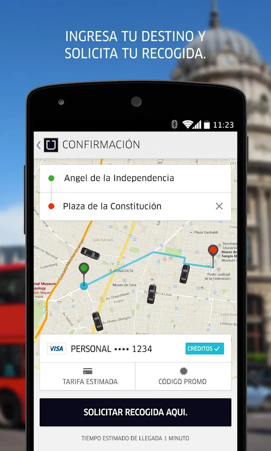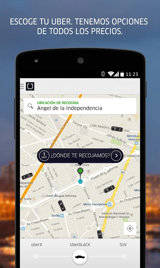 Fácilmente establece tu punto de recogida en el mapa, conéctate con tu chofer personal y checa el progreso de tu Uber en cualquier momento.