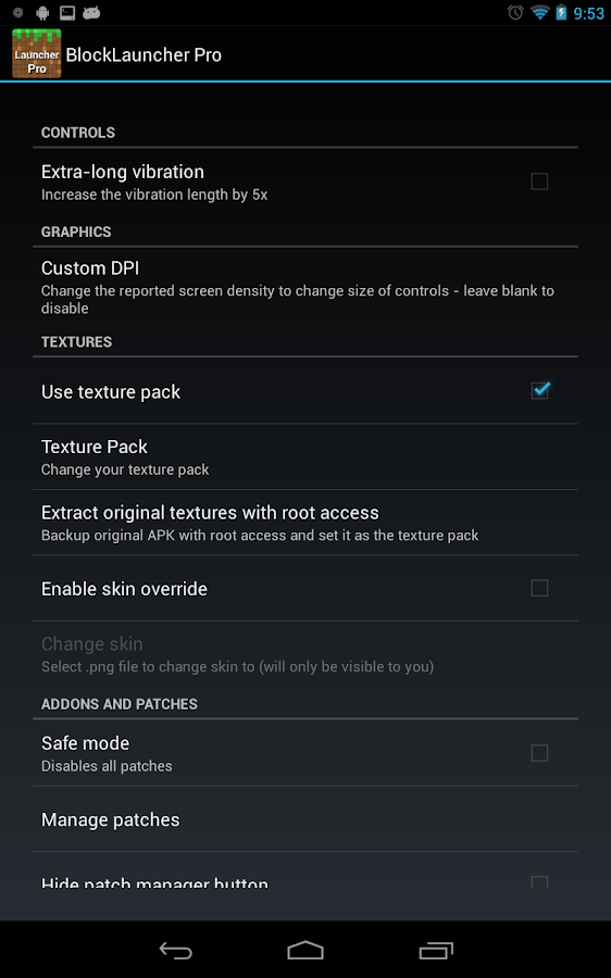 BlockLauncher Pro es una costumbre lanzador Minecraft Pocket Edition que se envuelve alrededor de Minecraft PE y proporciona una carga de parches, paquetes de texturas, y direcciones IP de servidores.