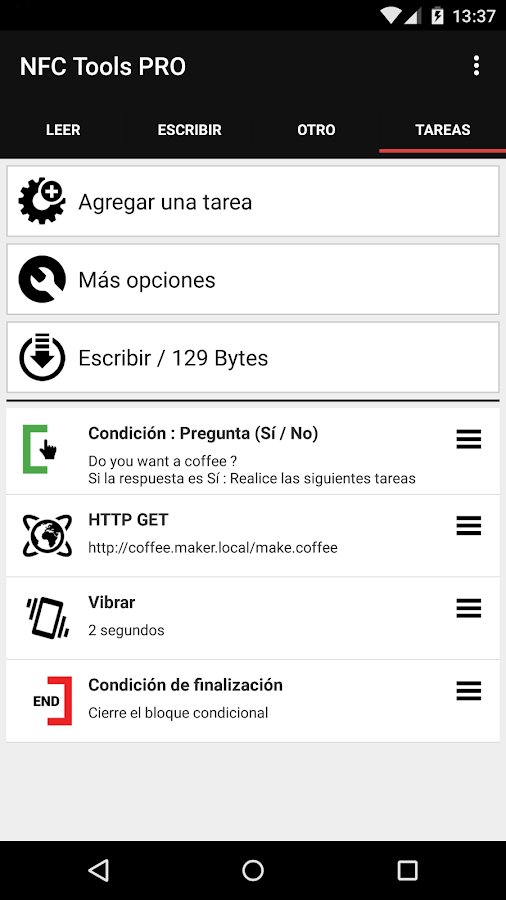 NFC Tools le permite leer y escribir las etiquetas NFC y otros chips RFID compatibles con su dispositivo.