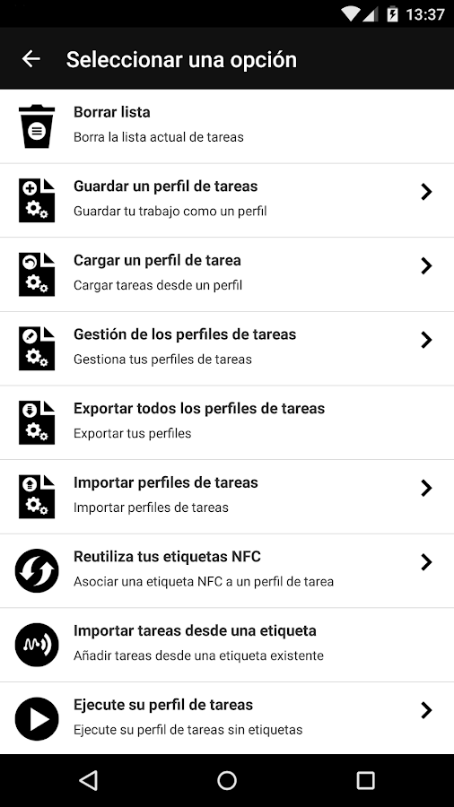 Otras características estan disponibles, tales como la copia o la supresión de una etiqueta NFC.