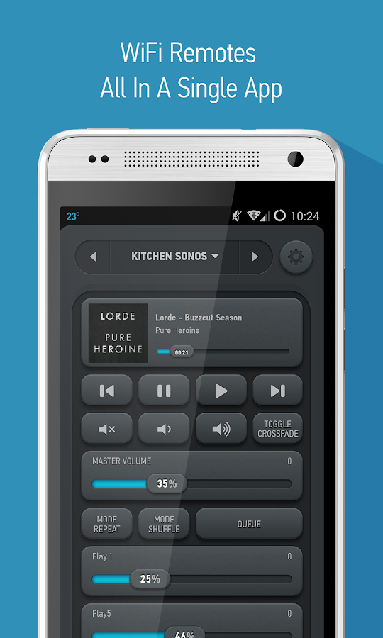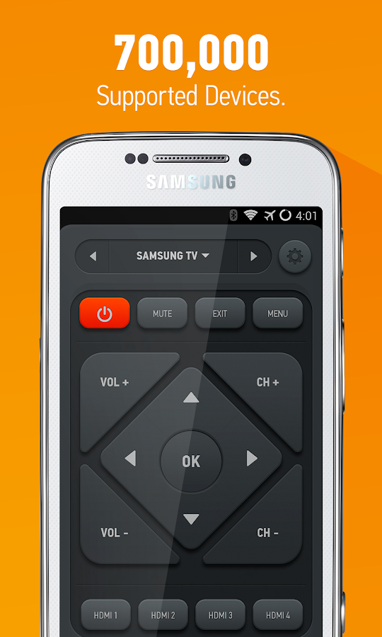 Con Smart Remote para Samsung / HTC, puedes añadir, crear y personalizar cualquier número de controles remotos, combinando controles de cualquiera de tus controles remotos existentes. Imagina un único control remoto en el que el botón BAJAR CANAL controla el descodificador del proveedor de TV, los botones de VOLUMEN controlan el sistema de cine en casa y las teclas de flecha controlan el menú del televisor.