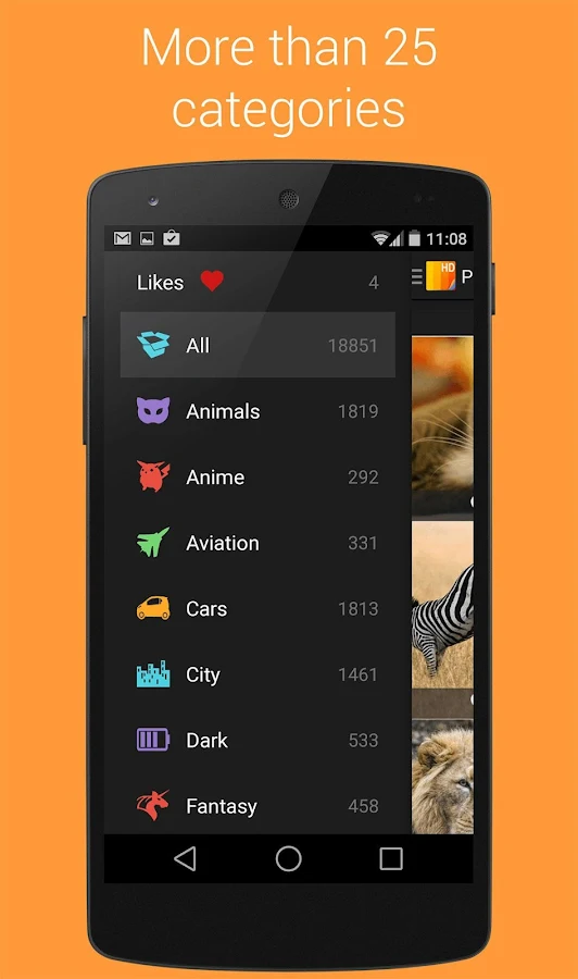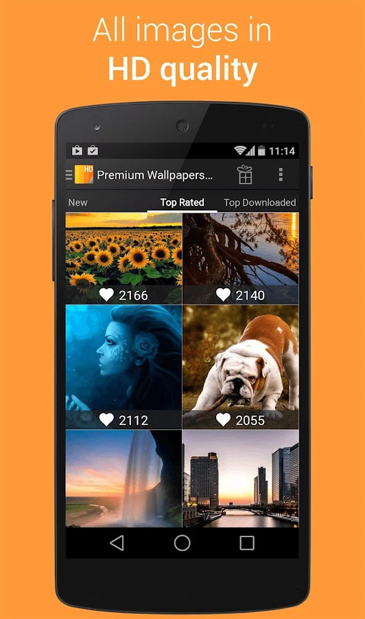 Una interfaz de usuario moderna pero sencilla se utiliza para que pueda navegar fácilmente entre las categorías. Esperamos que hará que sea fácil llegar a los fondos de pantalla que desee. También en prima Wallpapers HD (Fondos HD) usted tiene la oportunidad de los fondos de pantalla favorito que te gustan más, junto con los usuarios de todo el mundo, por lo que sus fondos de pantalla favoritos suben a la cima!