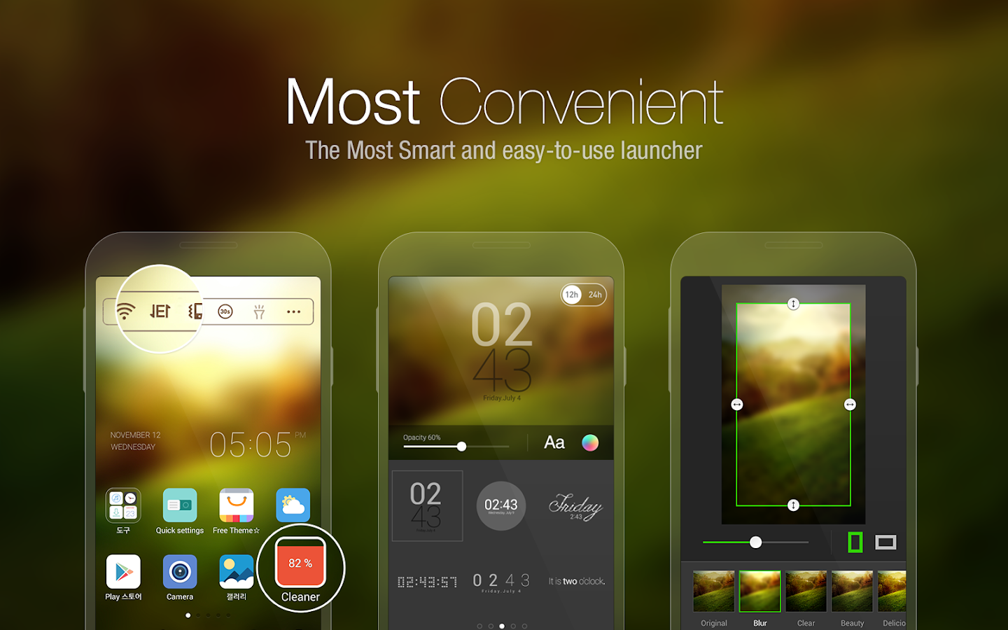 Dodol Launcher permite a los usuarios decorar la pantalla inicial de Android y el fondo de los cajones de las aplicaciones, las cuales contiene las aplicaciones del usuario. Esto sirve para crear un Smartphone personalizado.