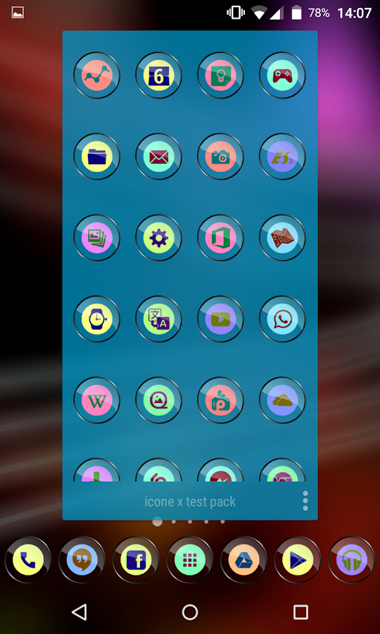 Un paquete elegante icono con forma redonda para todos los dispositivos que posee en tonos pastel detrás de una capa de vidrio increíble!