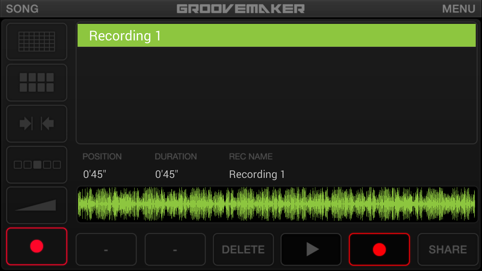 GrooveMaker 2 es muy fácil: Selecciona una canción Song para entrar al interfaz Grid. Oprime el botón Randomix, y verás bloques de construcción en la matriz, y la música empieza a tocar. Puedes cambiar secciones usando Randomix, o "dibuja" nuevas secuencias en el cuadro. Puedes bloquear loops, aislar o silenciarlos, cambiar el volumen o pan, y asociar loops a cada una de las 8 pistas.