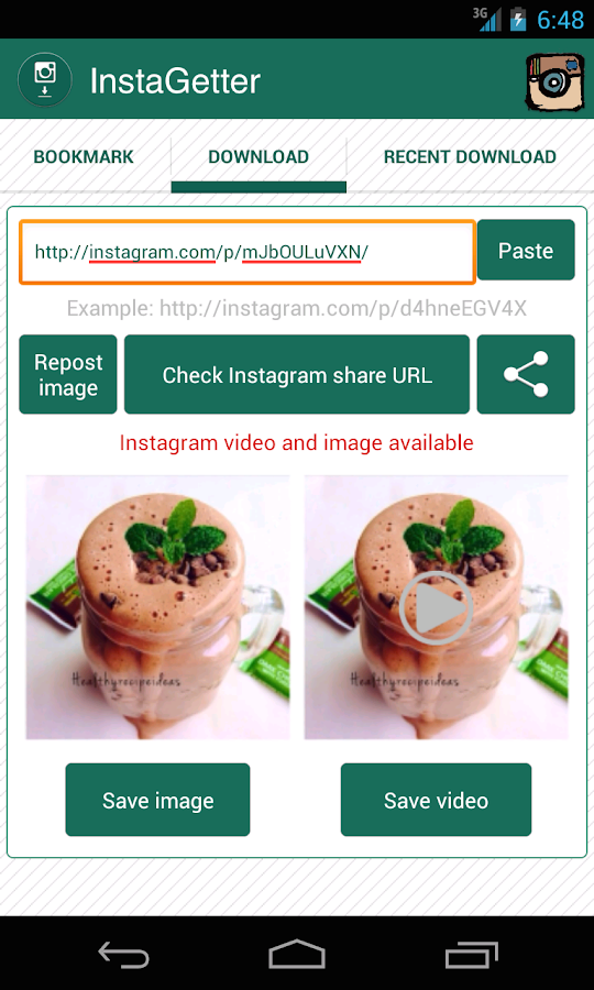 ② Abra la 【】 InstaGetter, pegue el URL y pulse descarga