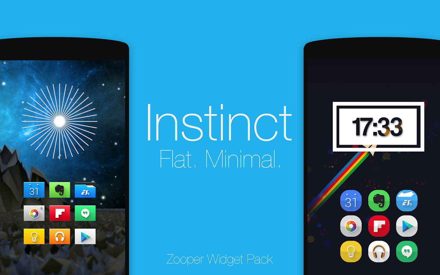 La introducción Instinct. Un conjunto de widgets planas, mínimo (y alguna otra impresionante), que son todos hechos por mí para felicitar cualquier pantalla de inicio.