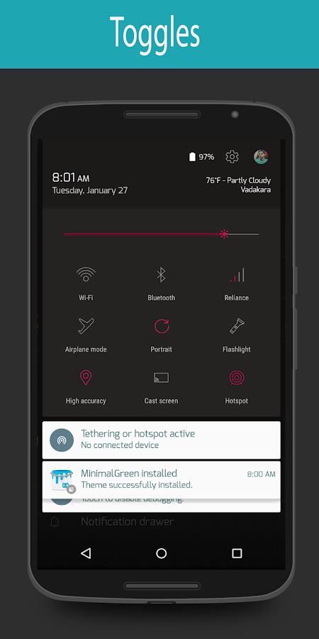 Material ligero es un tema personalizado para CyanogenMod 12 y otras roms que tienen motor del tema.