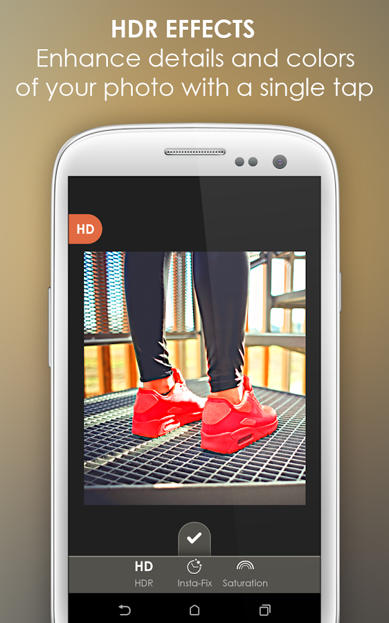 Con Pixter, usted puede tomar una foto directamente desde el teléfono y recortar, redimensionar o editarlo en cualquier imagen para su gusto directamente desde el álbum de fotos o Facebook. Cámara auto de Pixter fija su imagen con la opción HDR para convertir su foto en una foto de alta definición. Con HDR, obtendrá los colores brillantes, contrastes de imagen nítida y riqueza de detalles que hacen que sus fotos se ven como un disparo de cámara profesional.